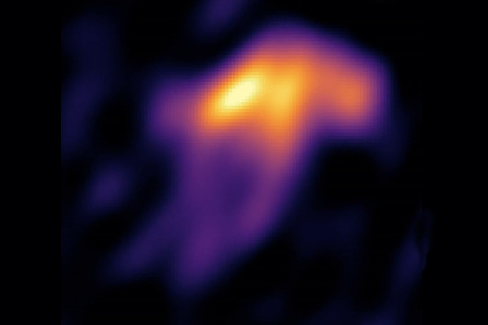 Rádiový fénix ve tvaru medúzy pozorovatelný jen v úzkém pásu rádiového záření.
