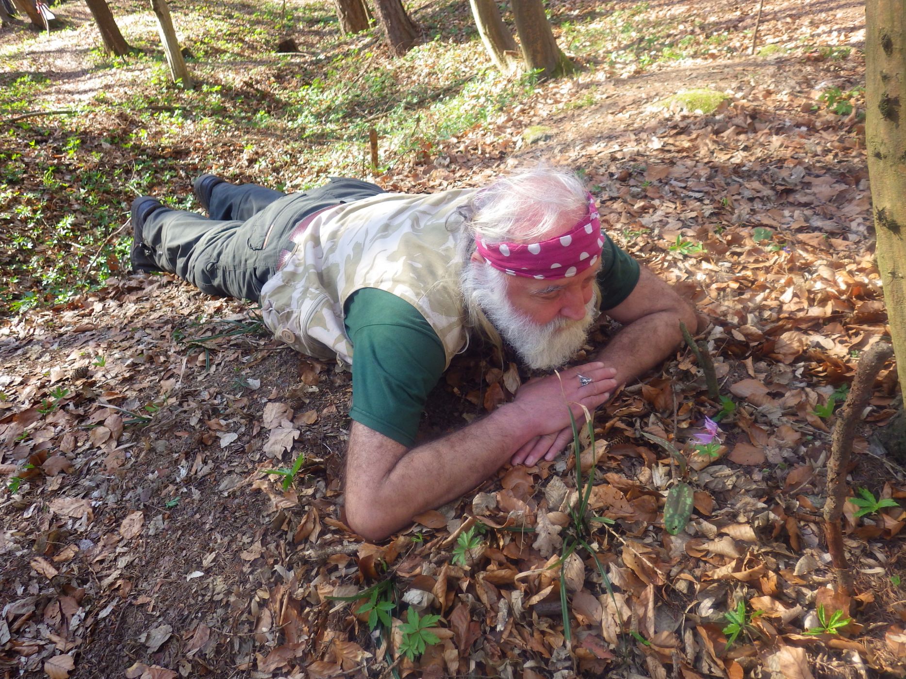 Rendez-vous kandíku se sasankou hajní. Krásně jsou vidět vejčité až široce kopinaté listy s nachovo-tmavozeleným mramorováním.
