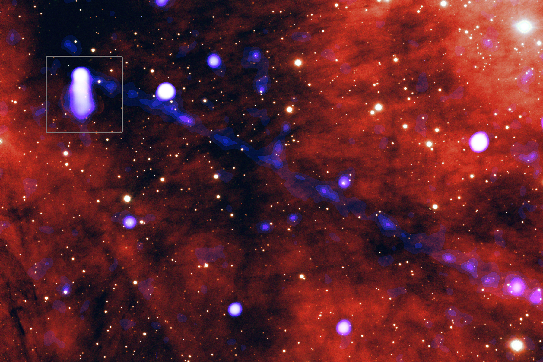 Kompozitní snímek s výtryskem pulzaru J2030.