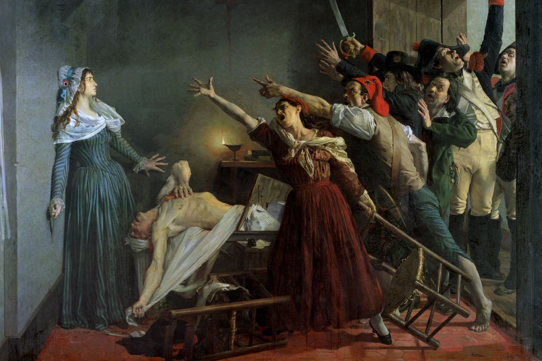 Charlotte jen chvíli po svém činu – obraz od Jeana-Josepha Weertse z roku 1880