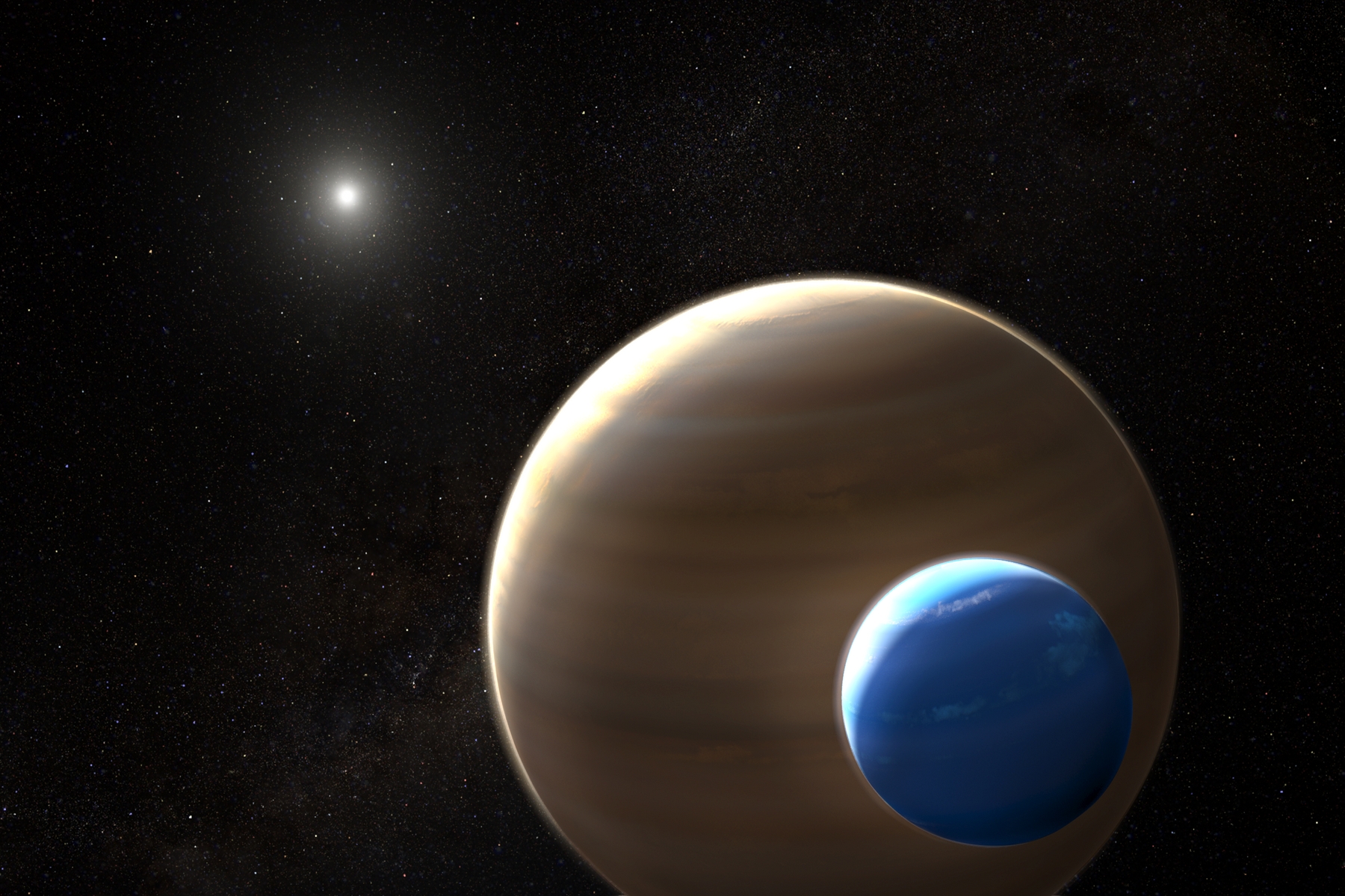 Vizualizace znázorňující (zatím nepotvrzený) exoměsíc u exoplanety
