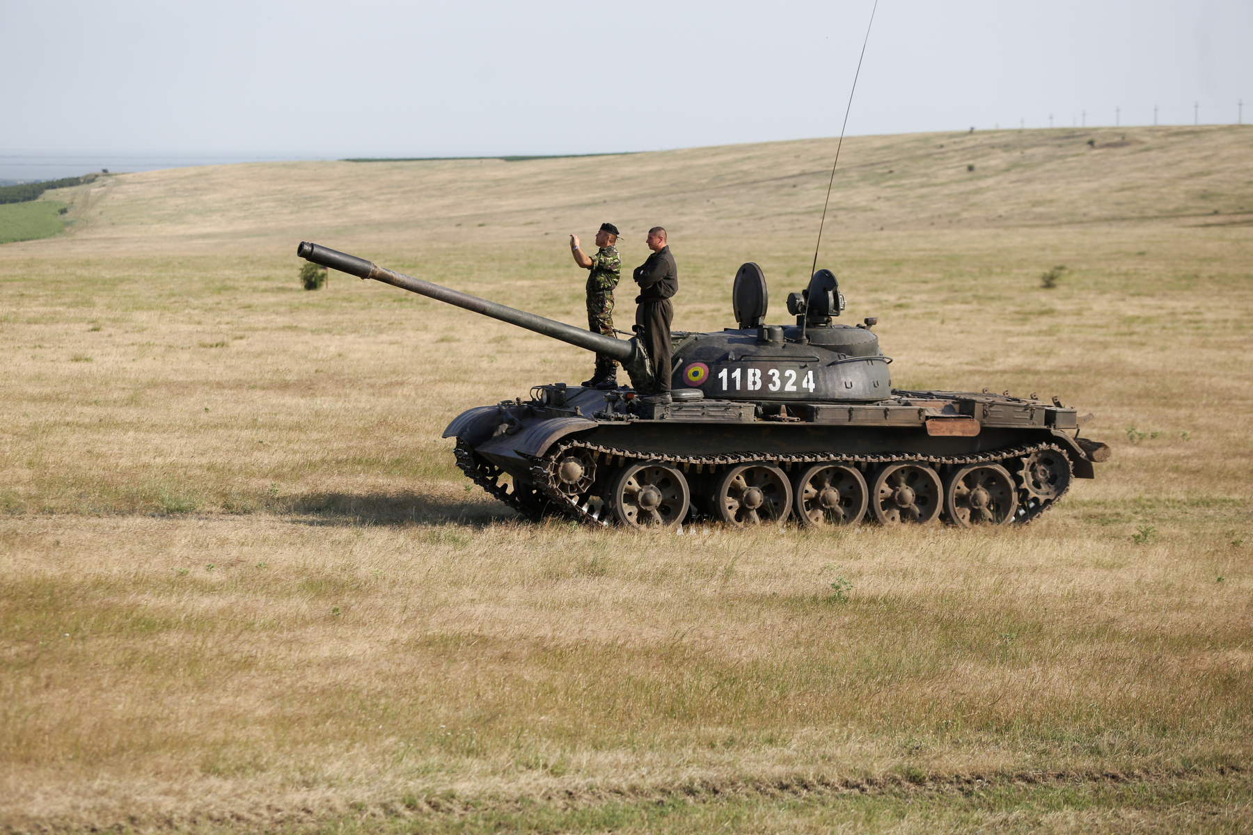 Stroj T-55 sovětské výroby během cvičení v Rumunsku.