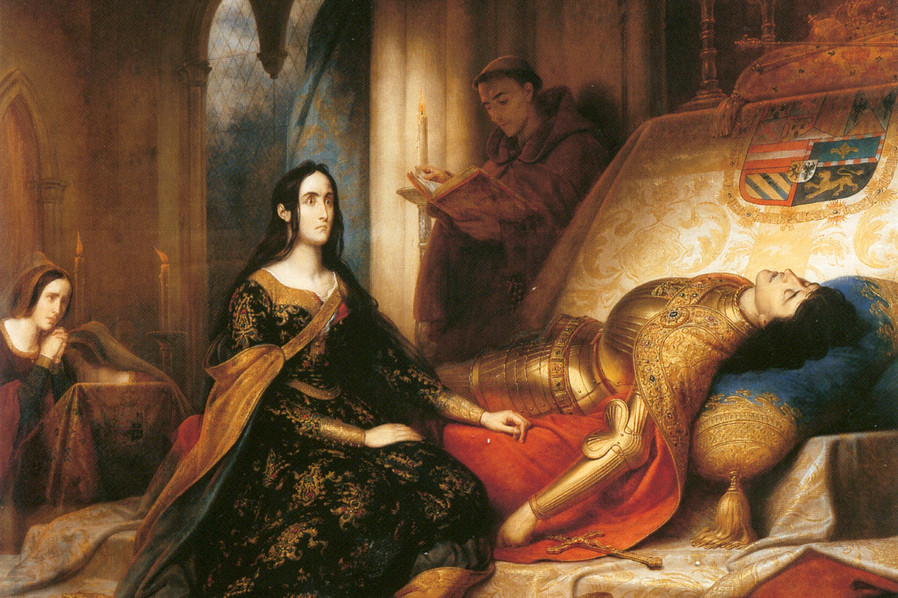 Jana I. Kastilská u lože mrtvého manžela na obraze německého romantického malíře Charlese de Steubena. (foto: Wikimedia Commons, Juana la Loca, CC0)