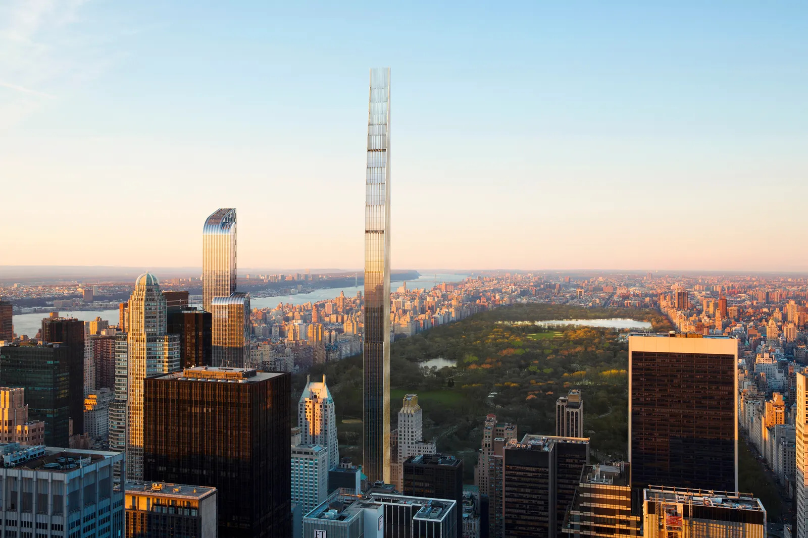 Steinway Tower, nebo též 111 West 57th Street je 435 metrů vysoký obytný mrakodrap s 85 patry nacházející se na Midtown Manhattanu v New Yorku. Jde o jeden z nejtenčích mrakodrapů světa, přičemž poměr výšky a šířky je přibližně 1:23. (foto: SHoP Architects, Hayes Davidson, CC BY 4.0)