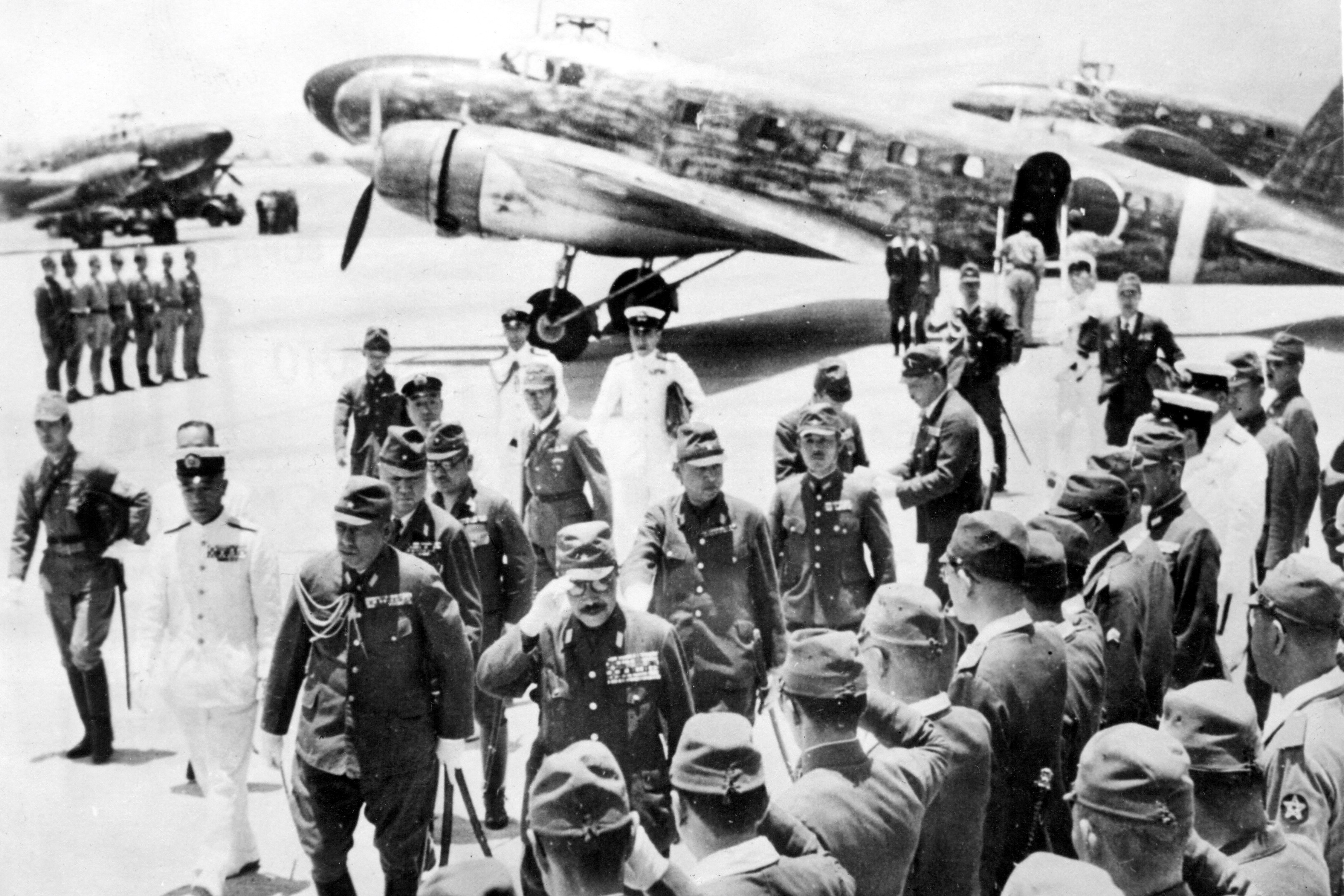 Hideki Tódžó již jako japonský premiér na manilském letišti před inspekcí posádky Filipín. Japonští vojáci na souostroví povraždili statisíce civilistů. (foto: Wikimedia Commons, Reader's Digest, TT News Agency, CC0)