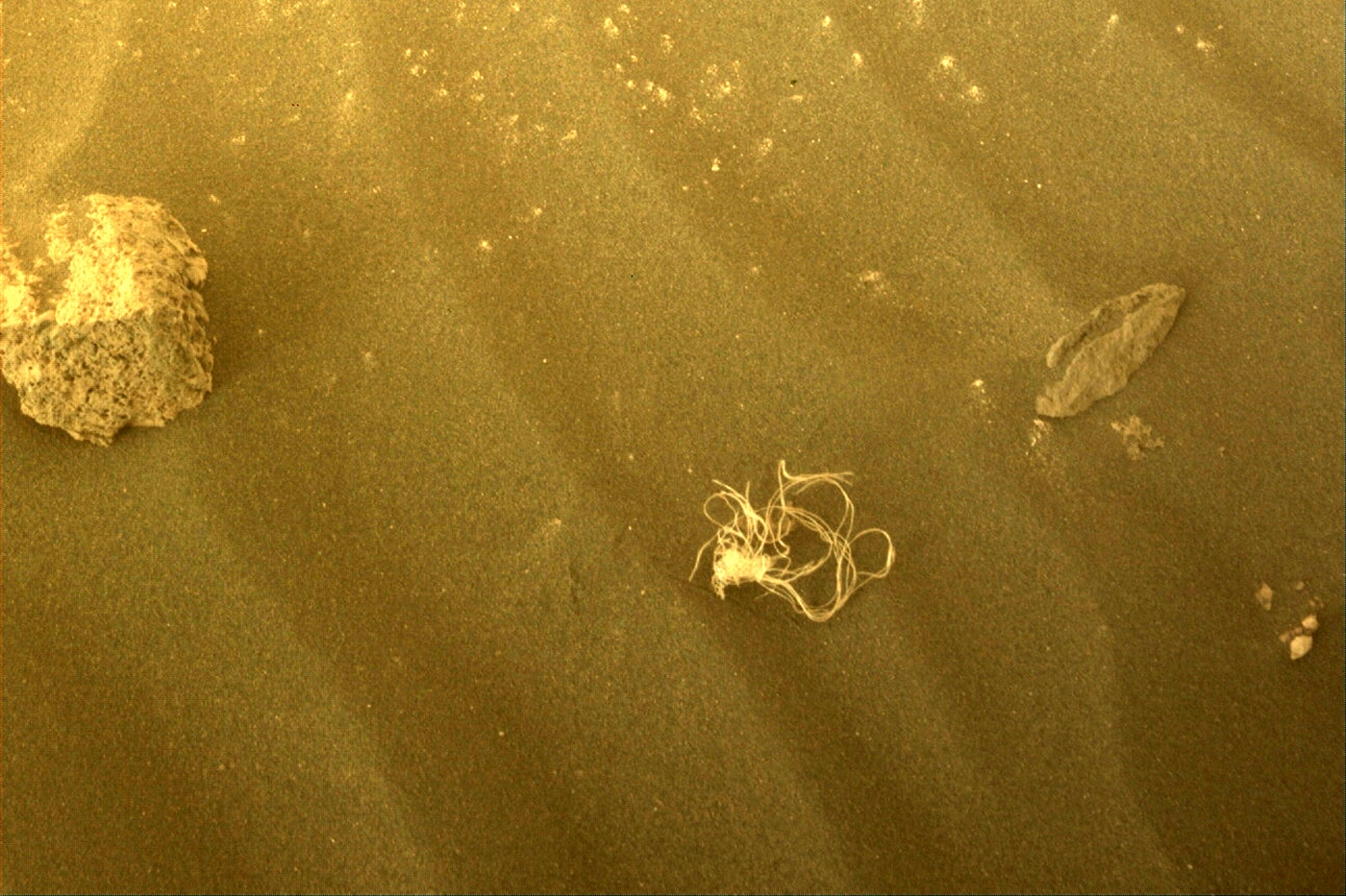 Podivný předmět, který na povrchu Marsu vyfotil rover Perseverance. Podle NASA jde o odpad z přistání. (foto: NASA/JPL-Caltech, CC0)