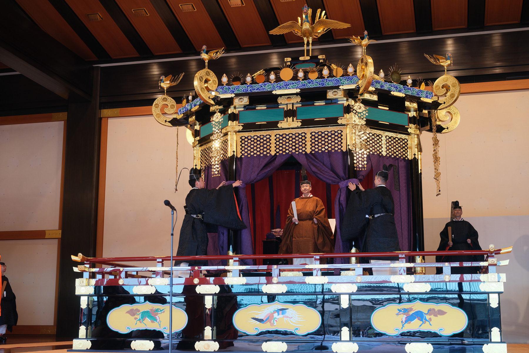 Ke korunovaci slouží v Japonsku tzv. chryzantémový trůn neboli kói, doslova „císařské sedadlo“. Ve skutečnosti přitom nastupující vladař na trůn neusedá, ale během celé ceremonie stojí před ním. (foto: Profimedia)