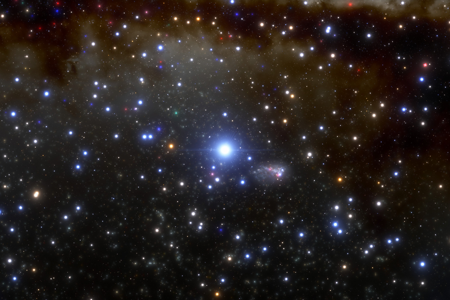 Ilustrace největší známé hvězdy ve vesmíru. (foto: NOIRLab/NSF/AURA, J. da Silva/Spaceengine, CC BY-SA 4.0)