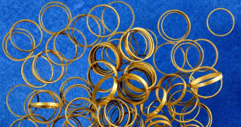 Část zlatých kroužků ze zvláštního zlatého pokladu z Rumunska. (foto: Ţării Crişurilor Museum, Oradea, Romania, CC BY 4.0)