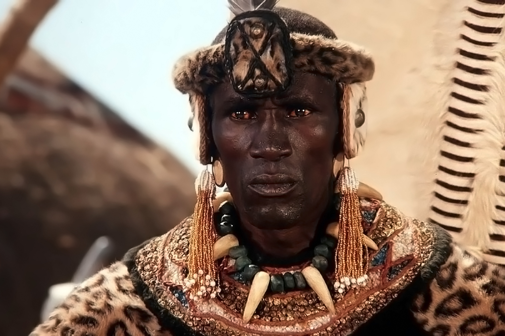 V roce 1986 vznikla o životě afrického válečníka úspěšná televizní minisérie Shaka Zulu. Čaku v ní ztvárnil jihoafrický herec Henry Cele, doktora Fynna si zahrál Angličan Robert Powell. (foto: © Medien Gmbh)