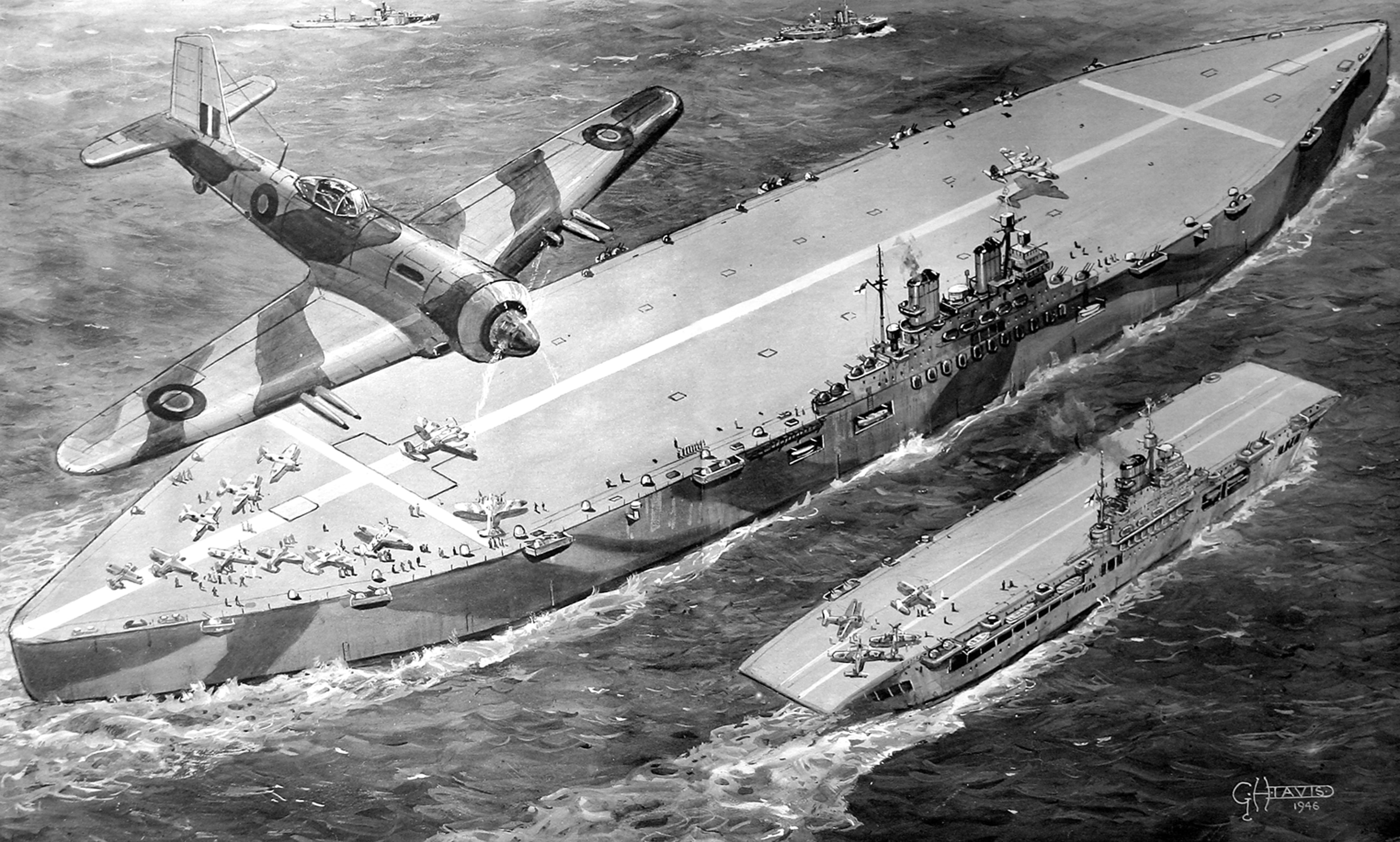 Umělecká představa letadlové lodi vyrobené z pykritu (vlevo) ukazuje její velikost v porovnání s klasickým nosičem. (ilustrace: Profimedia)