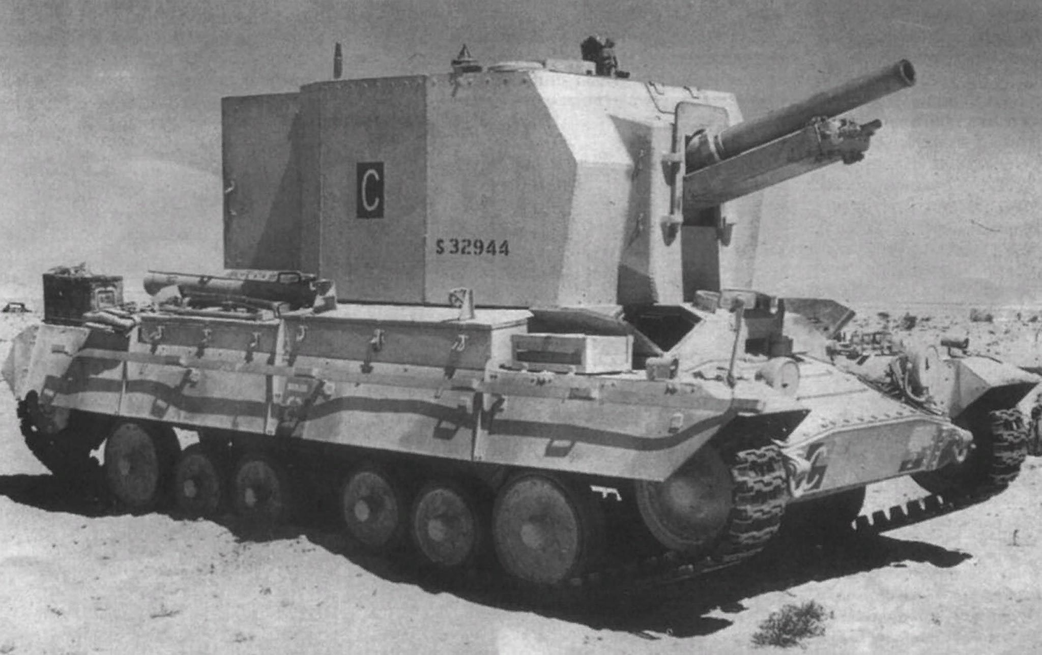 Samohybné dělo Bishop vzniklo jako montáž 25liberního kanonu do masivní nástavby na podvozku pěchotního tanku Valentine. (Wikimedia Commons, Imperial War Museums, CC0)