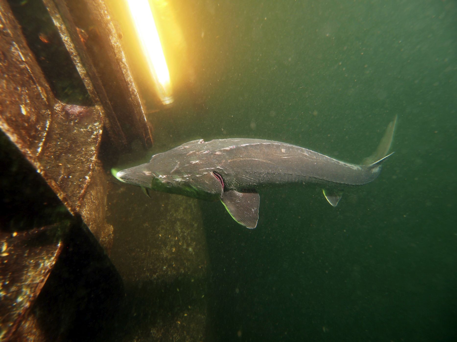 Tento jeseter dosahoval délky jednoho metru a vůbec se nás nebál. Vzbuzoval v nás dojem ochočeného mazlíčka, který chce pomazlit nebo podrbat. (foto: © Nikita Nashipae Loxodonta)