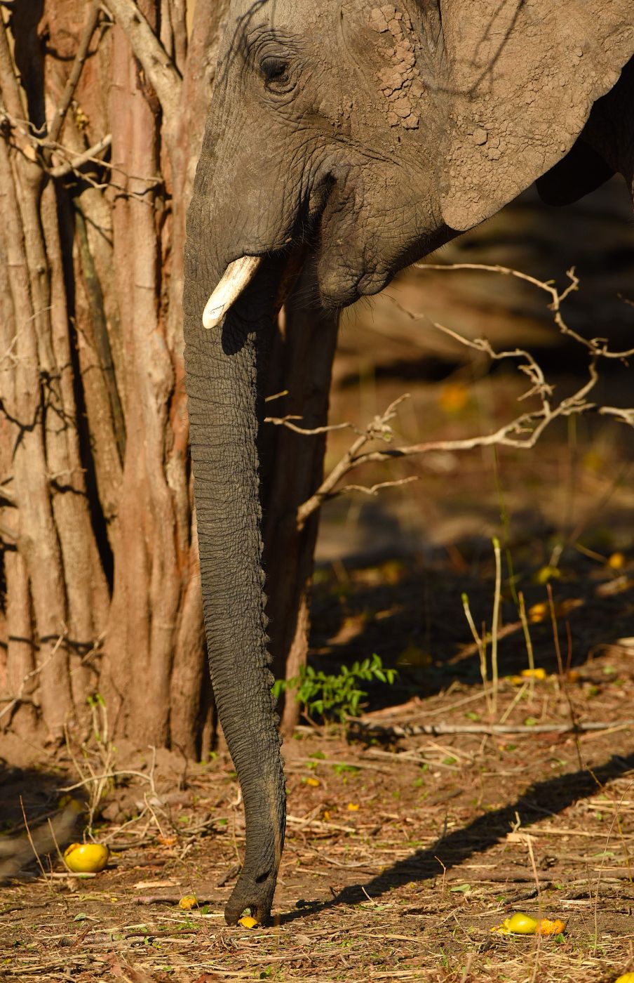 • Sloni ohledávali spadané ovoce s velkou pečlivostí a zdaleka ne každý plod pro ně byl lákavý. (foto: © Richard Jaroněk)