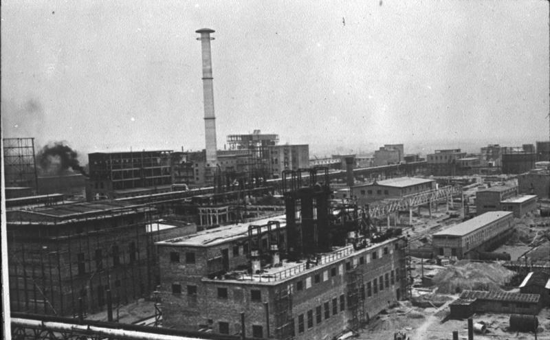 Rozestavěná továrna IG Farben v Osvětimi-Monowicích: vyráběl se zde kaučuk, syntetický benzin, barviva i léčiva.