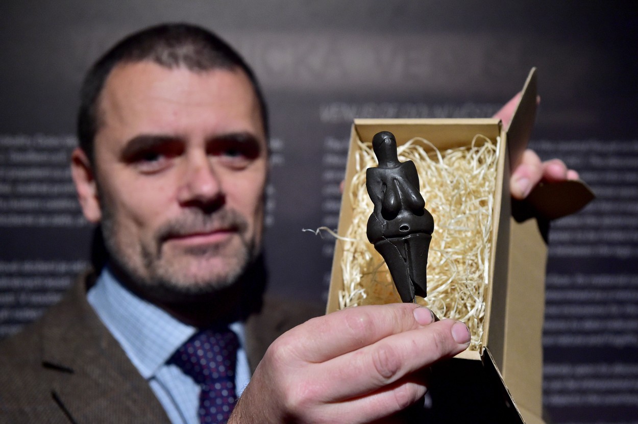 Kurátor Věstonické venuše Petr Neruda ukazuje věrnou kopii Věstonické venuše. (foto: Profimedia/ČTK, Šálek Václav)