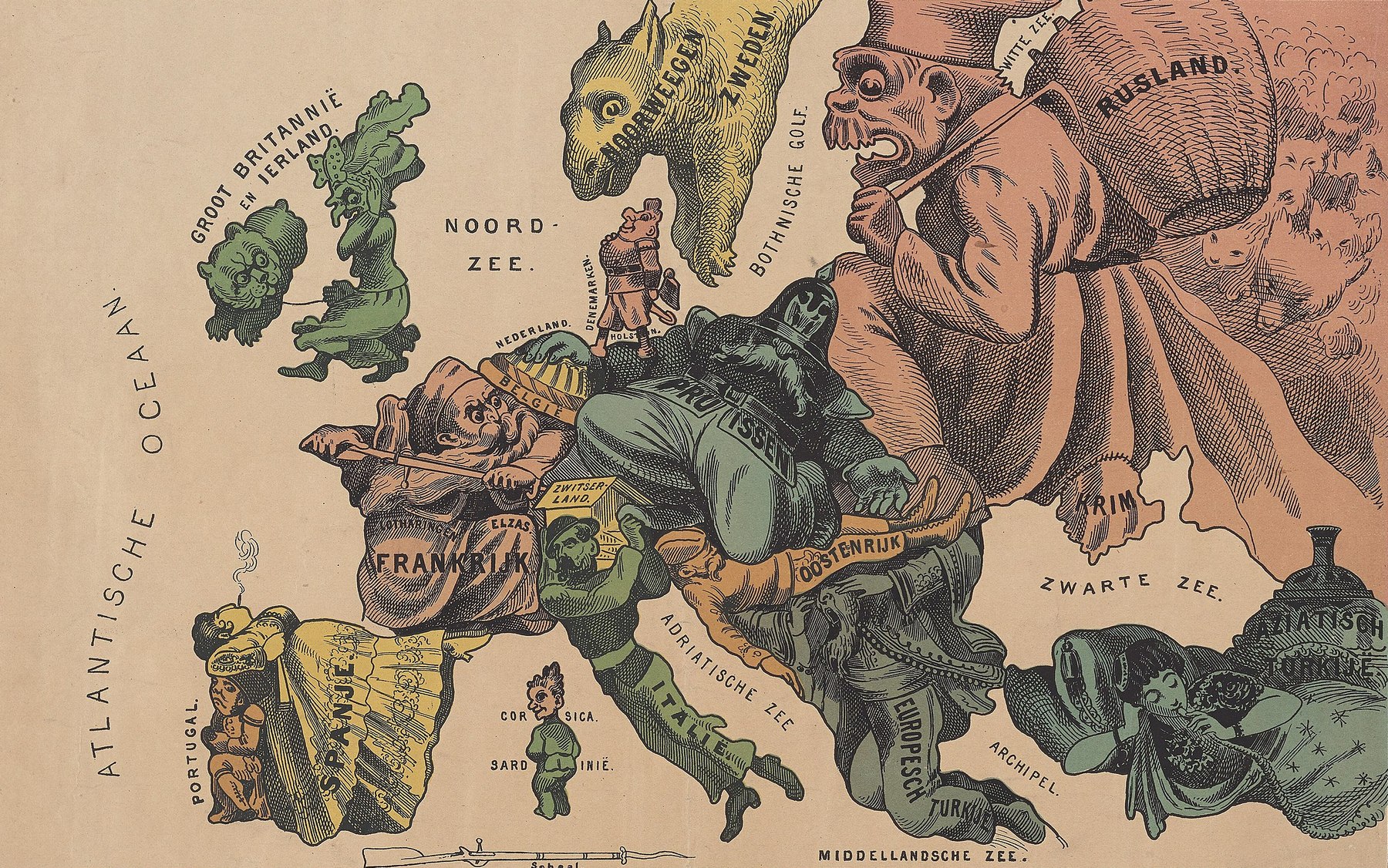 Humoristická mapa z roku 1870 zachycuje říše v Evropě a na Blízkém východě. (ilustrace: Wikimedia Commons, CC0)