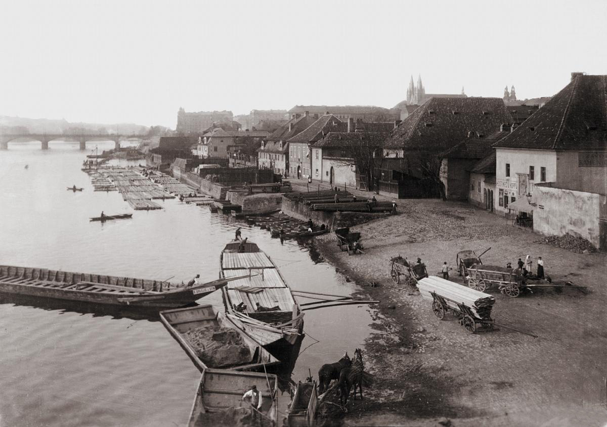 Strašidlo se projevovalo nedaleko starého patricijského patrového domu dřevařské rodiny Procházkovy, který stával při ohradě bokem šikmo k řece. (foto: Muzeum města Prahy, CC0)