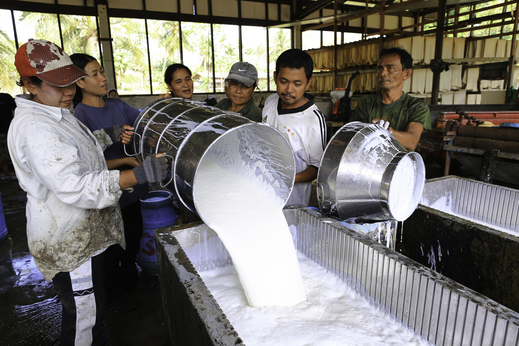 V závislosti na plánovaném využití se nasbíraný kaučuk čistí, redukuje a suší, nebo se naopak přepravuje v tekutém stavu. (foto: Shutterstock)
