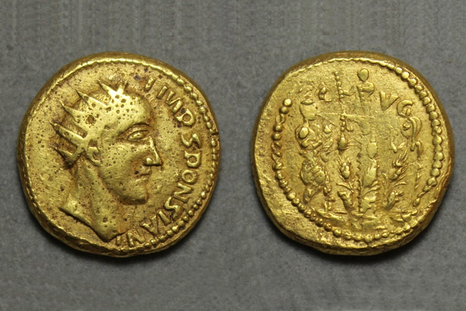 Zlatý římský aureus s vyobrazením údajného římského vládce Sponsiana. (foto: PLOS ONE, Paul N. Pearson, CC-BY 4.0)