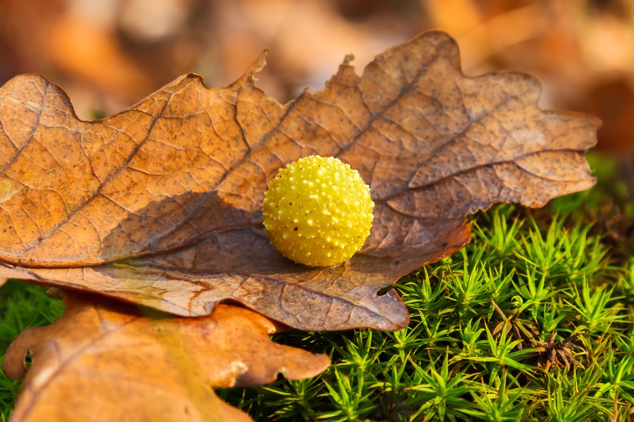 Tento útvar známe i z našich lesů – pravděpodobně jde o hálku žlabatky dubové(Cynips quercusfolii) na listu dubu letního (Quercus robur).(foto: Shutterstock)