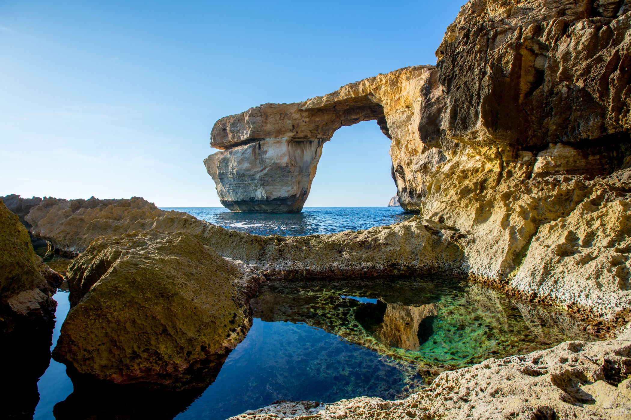 Azurové okno bylo dříve k vidění v zálivu Dwejra poblíž takzvané Houbové skály a laguny nazývané Vnitřní moře nebo také Qawra. Objevilo se v mnoha filmových záběrech, mimo jiné například ve filmech Souboj Titánů (1981) a Hrabě Monte Cristo (2002). (foto: Shutterstock)