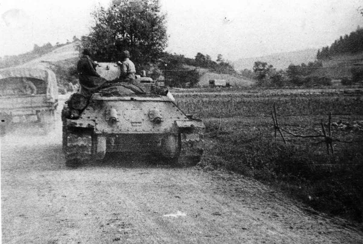 Československé tanky během přesunu k prvním karpatským hřebenům.