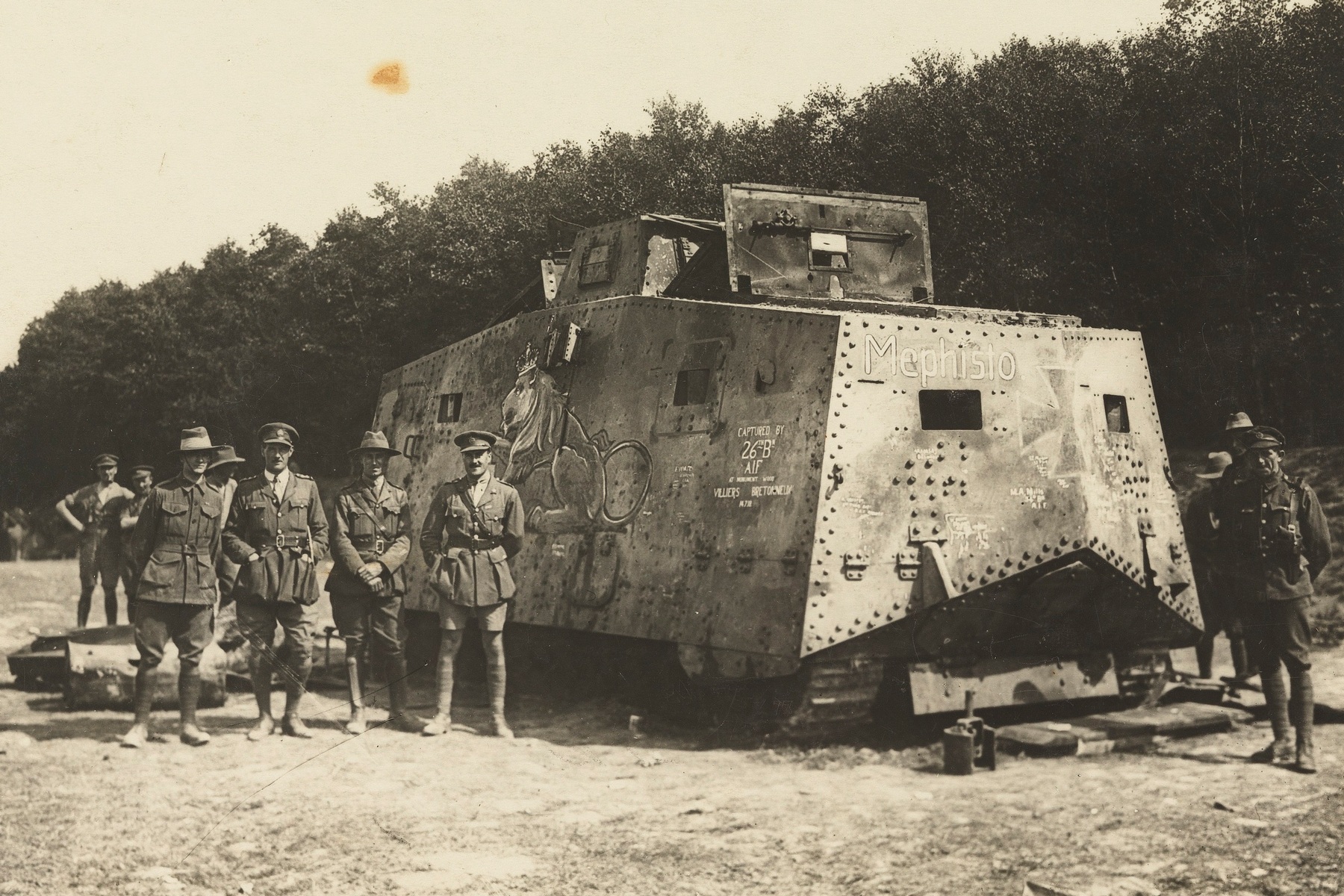 Obrněnec Mephisto A7V si nedokázal poradit ani s menšími zákopy. (foto: Wikimedia Commons, Tasmanian Archive and Heritage Office Commons, CC0)