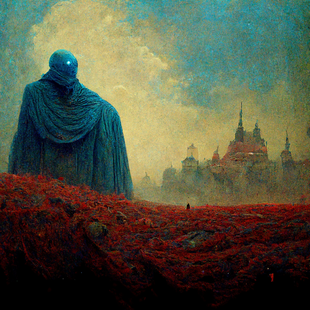 • Kdyby Brno namaloval polský surrealista Zdzisław Beksiński, vypadalo by podle AI takto. (ilustrace: Midjourney/Vilém Koubek)