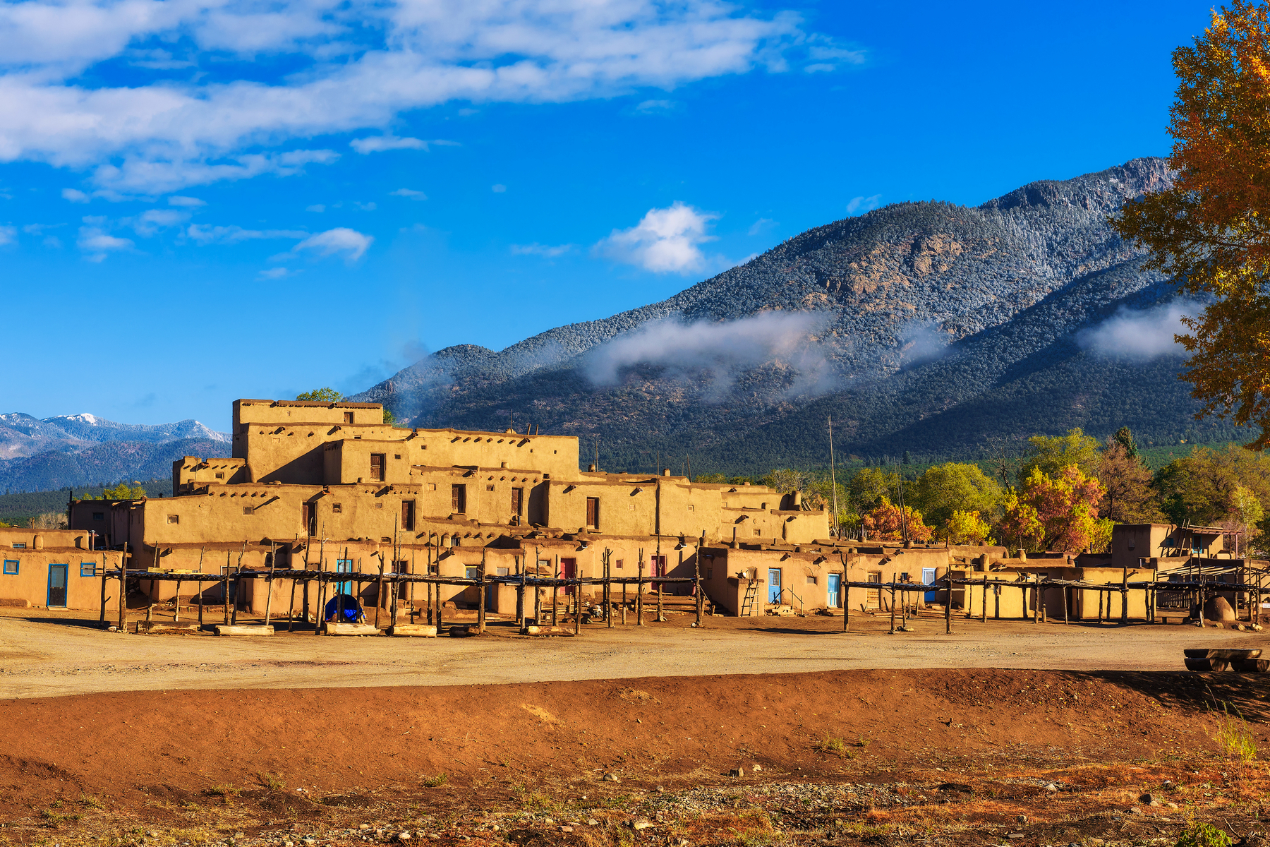 Původní domy z nepálených cihel v indiánské osadě Taos neměly dveře a dovnitř se vstupovalo ze střechy po žebříku. (foto: Shutterstock)
