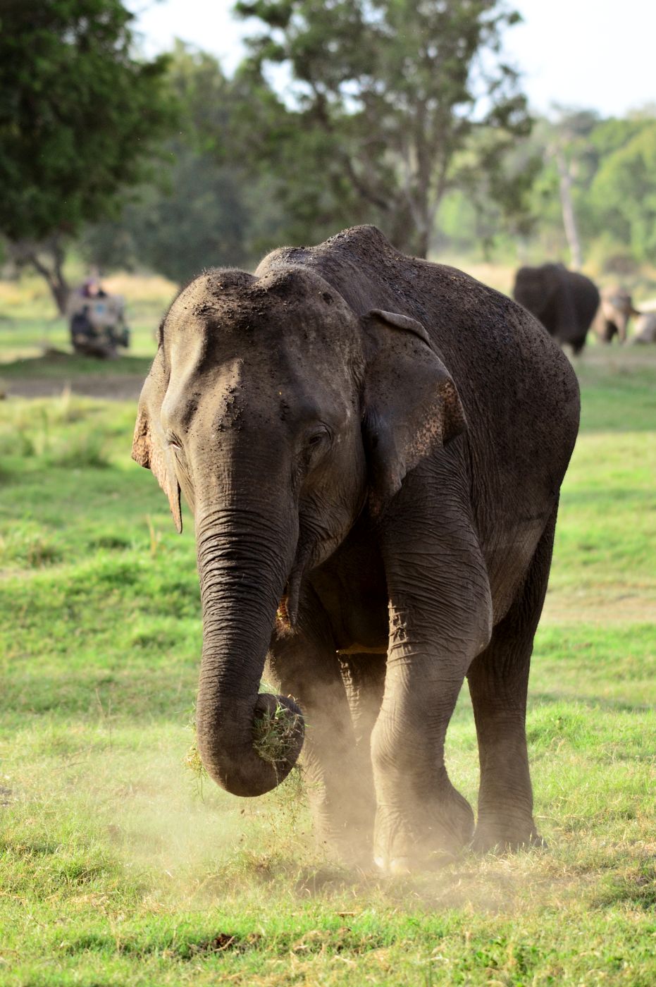 • Jeden z mnoha slonů na pozadí vodní nádrže Minneriya. (foto: Marek Velechovský - se souhlasem k publikování)