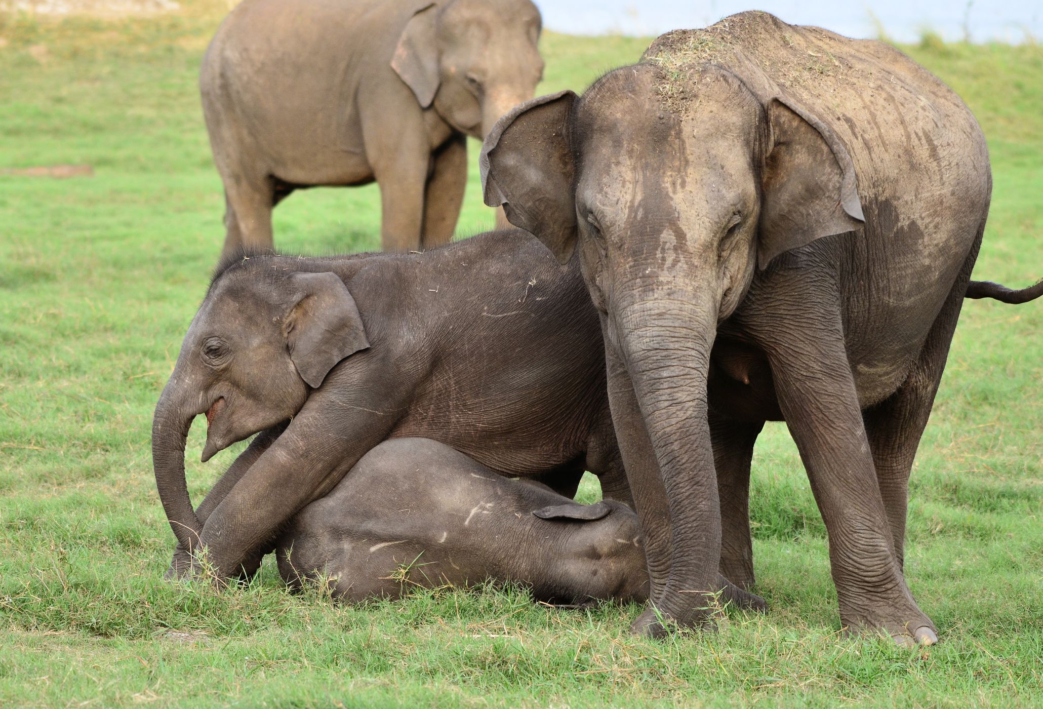• Malá „osrstěná“ slůňata jsou pod neustálým dohledem svých matek. (foto: Marek Velechovský - se souhlasem k publikování)