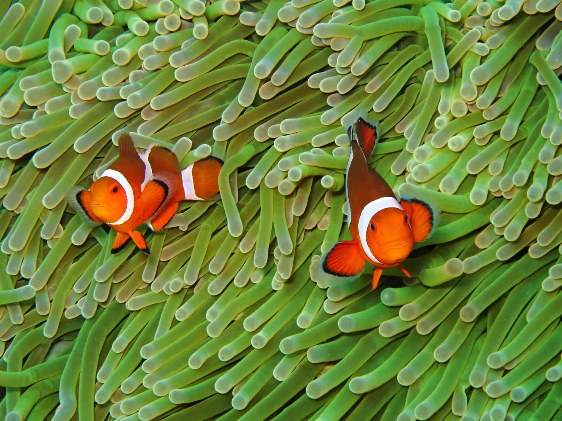 Většina sasanek je obsazena klauní samičkou a jejím partnerem. Kromě nich může žít na sasance i několik mladých neplodných samečků. Soužití s žahavými sasankami je přitom pro klauna očkatého naprosto klíčové. Ryby se od sasanky nikdy nevzdálí víc než jeden metr. (foto: Shutterstock)
