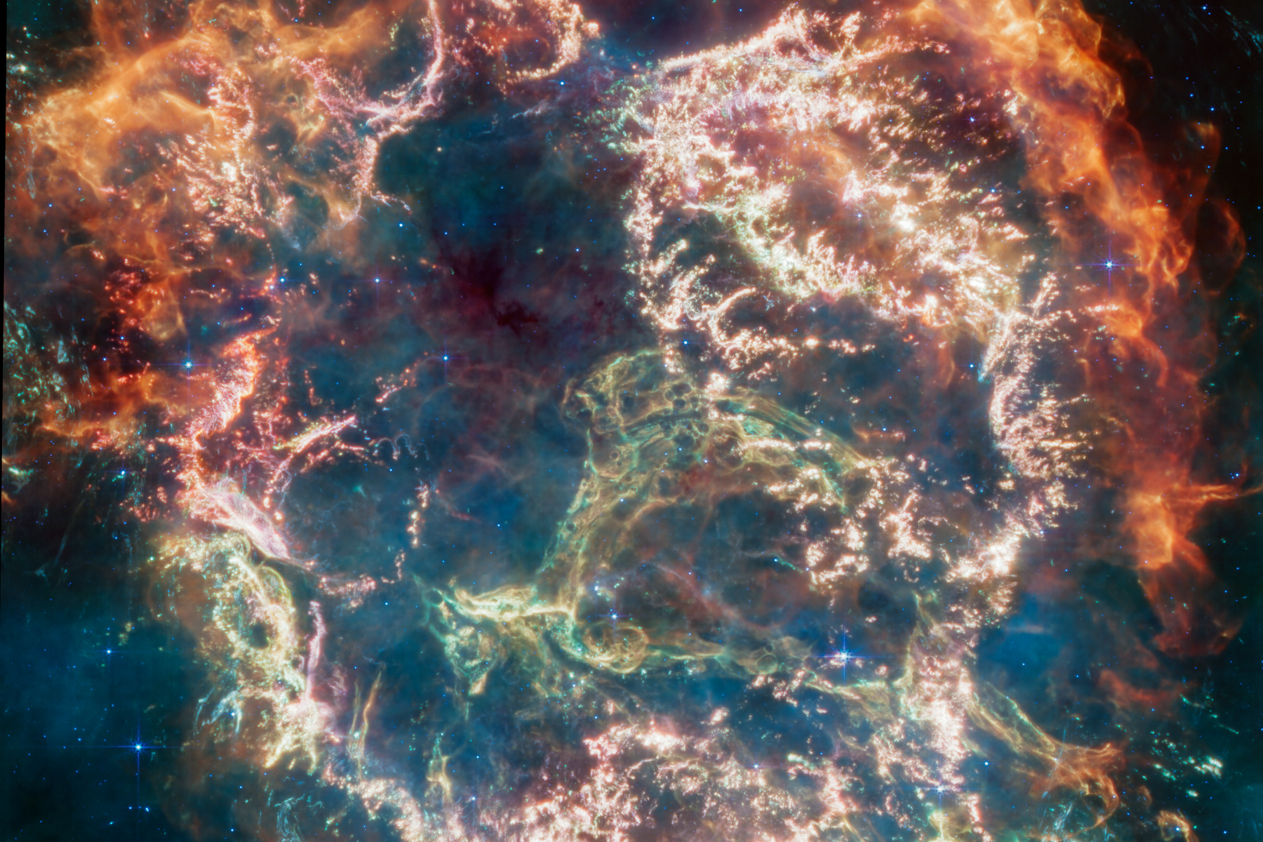 Snímek pozůstatku supernovy Cassiopeia A. (foto: NASA, ESA, CSA, D. D. Milisavljevic, T. Temim, I. De Looze, CC BY-SA 4.0)