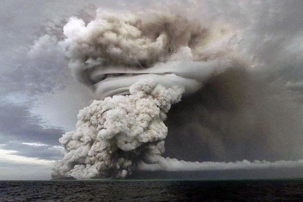 Při výbuchu sopky Hunga Tonga se uvolnila energie odpovídající asi 20 Mt TNT, která vytvořila vlny tsunami, dosahující výšky až 40 metrů. (foto: Profimedia (Tonga Geological Services)
