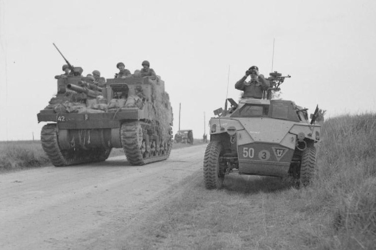 M7 Priest ze sestavy britské armády během vylodění v Normandii. (foto: Wikimedia Commons, Imperial War Museums, IWM Non Commercial Licence)