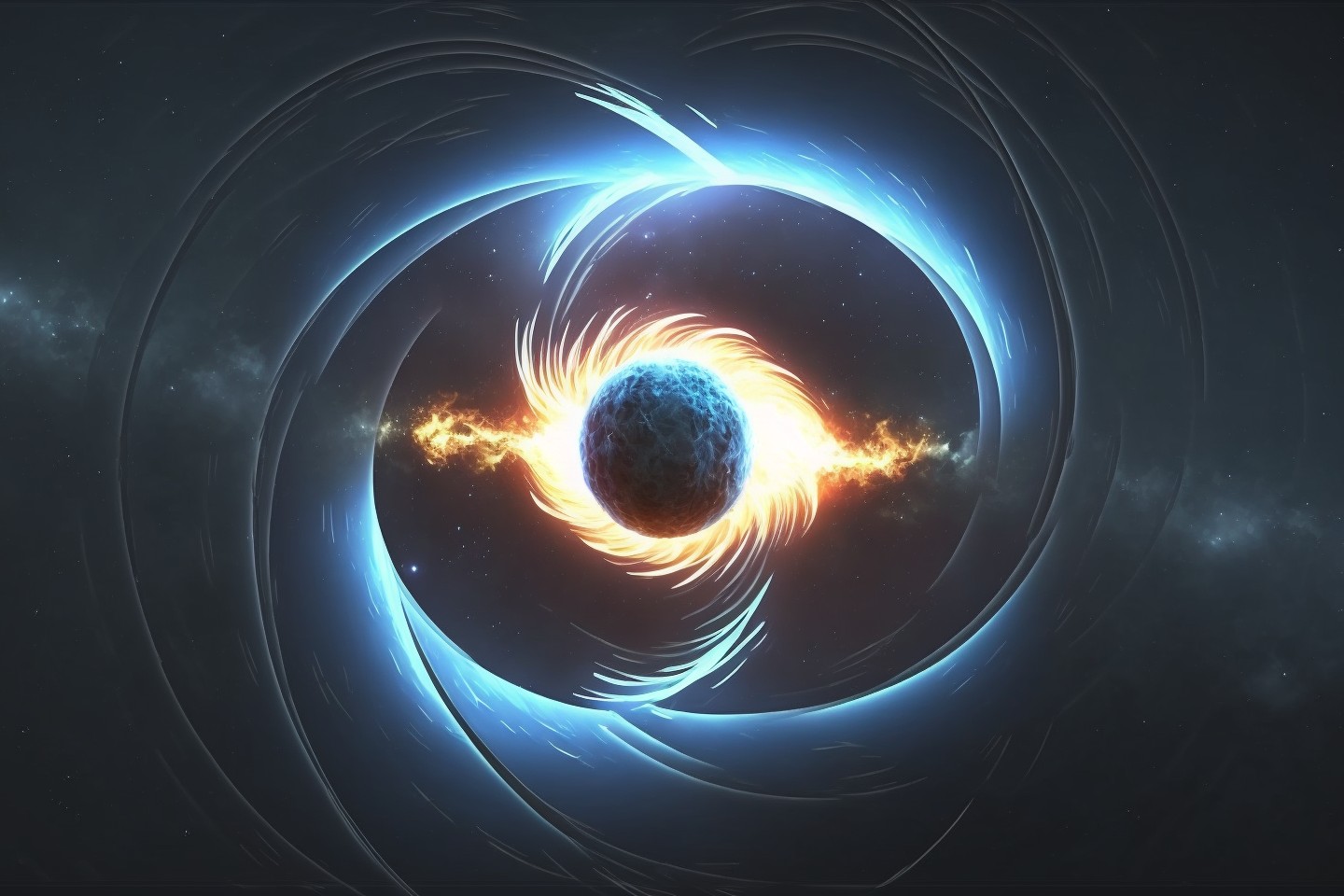 Indukce magnetického pole na povrchu pulzaru PSR J0901-4046 podle nových analýz přesahuje 2,7 bilionů tesla. (ilustrace: Midjourney AI, CC0)