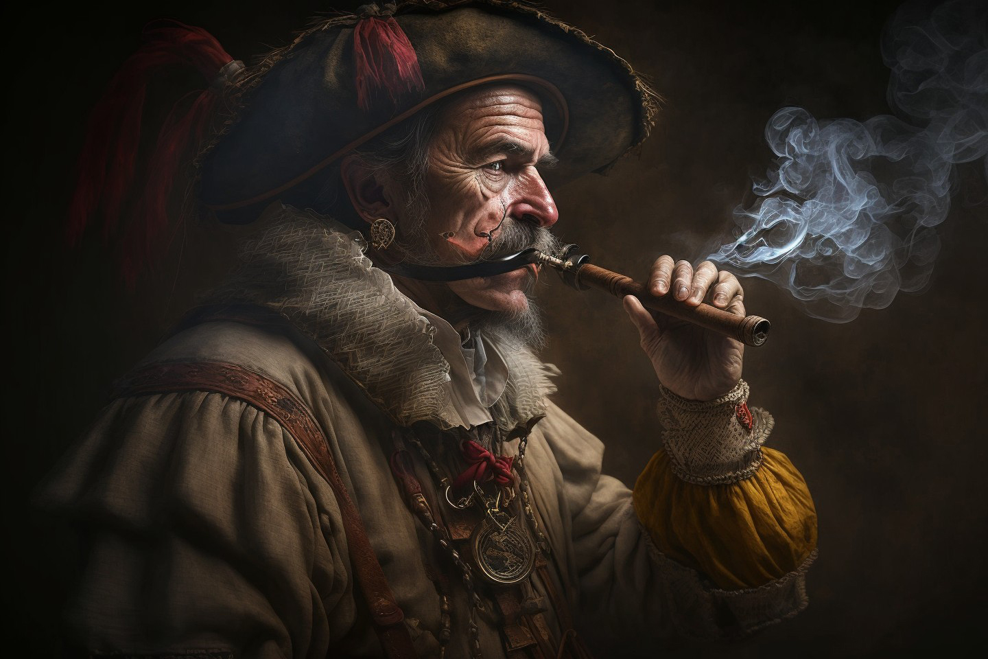 O rozšíření tabáku do našich krajů se zasloužila především třicetiletá válka. Obliba kouření navzdory zákazům rychle rostla a z hnědé rostliny se krom požitku stal i výnosný byznys. (ilustrace: Midjourney AI, CC0)