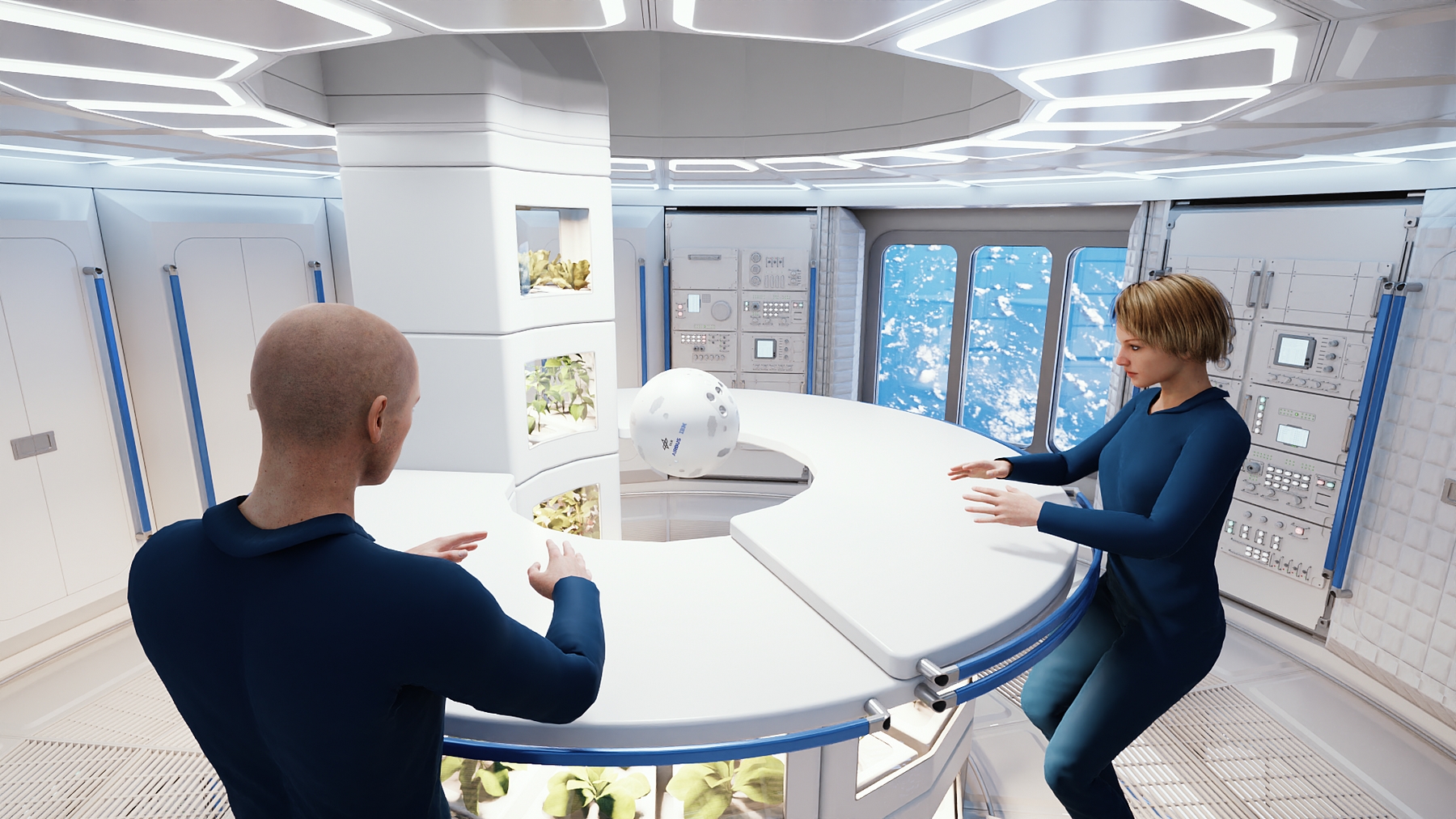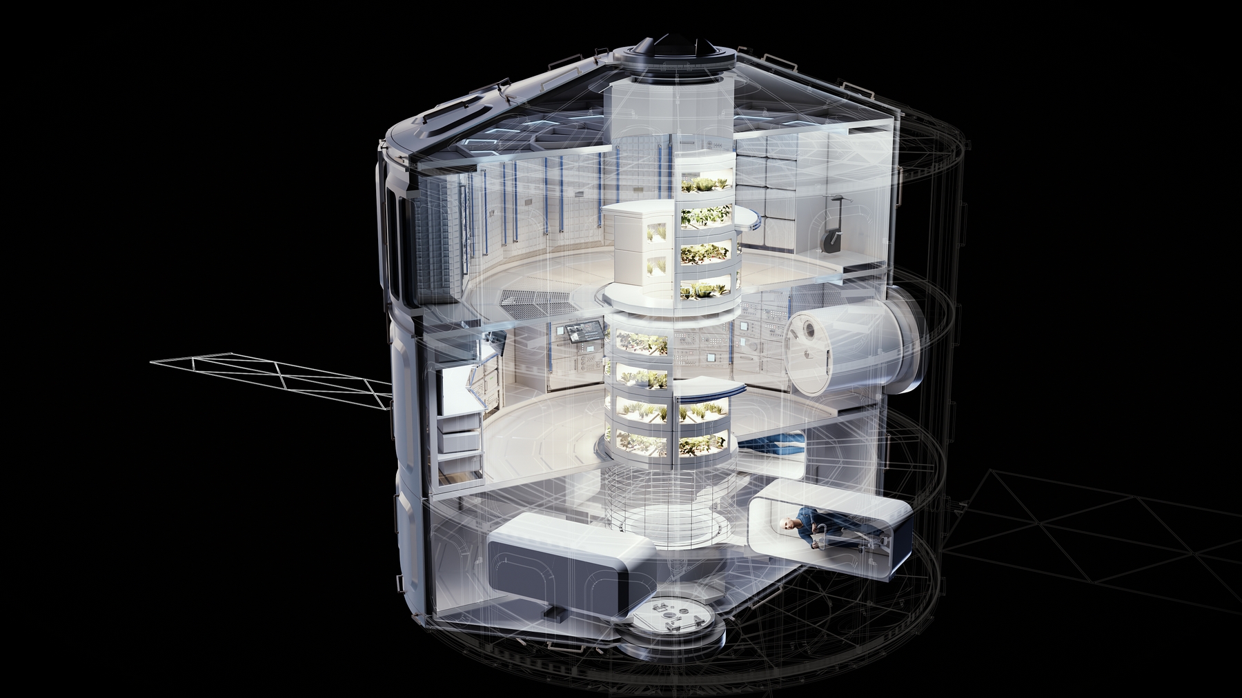 Obytná paluba budoucí orbitální stanice Airbus LOOP. (ilustrace: Airbus (press)