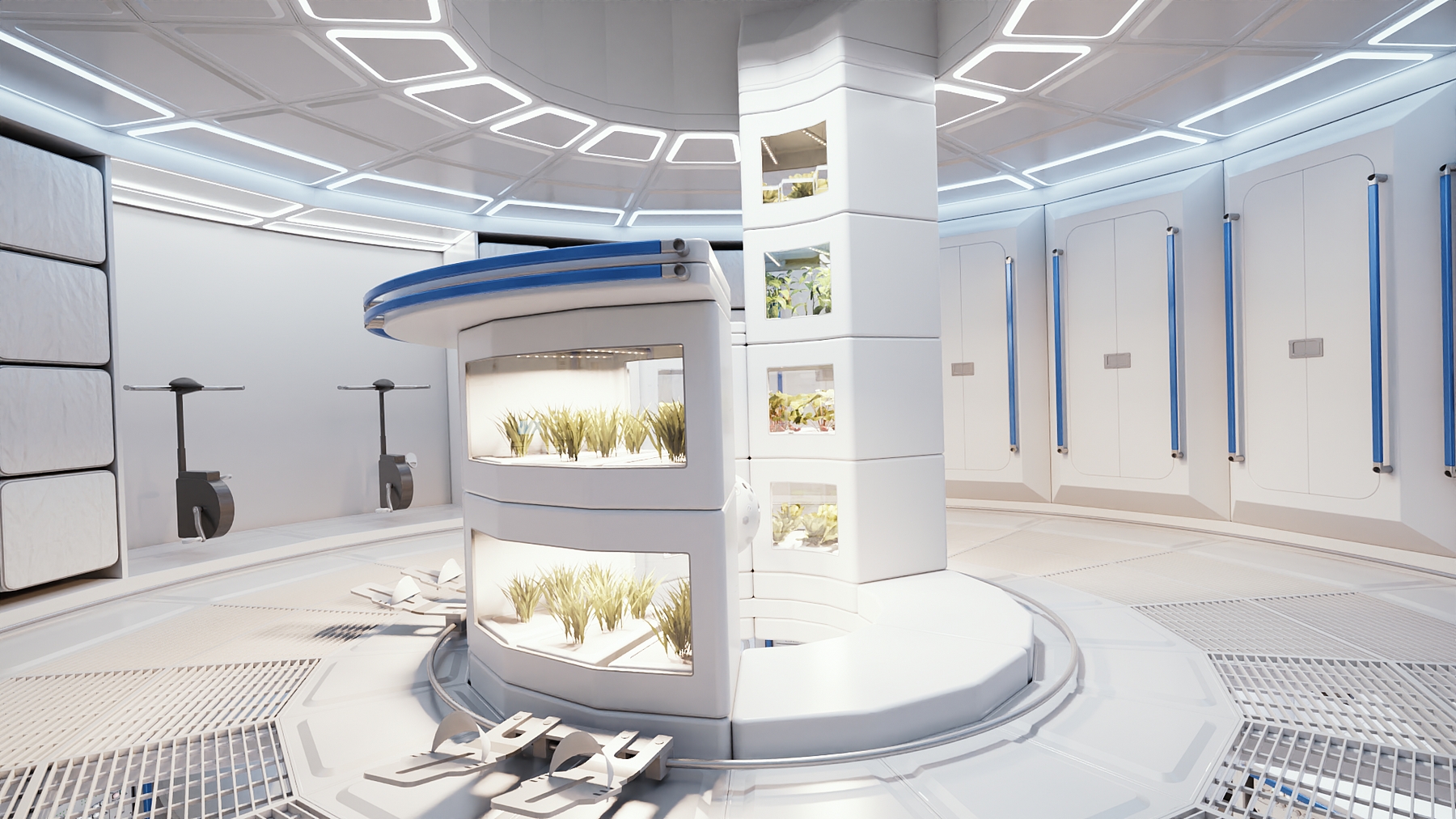 Na orbitální stanici Airbus LOOP nemá chybět ani prostor pro udržování fyzické kondice astronautů. (ilustrace: Airbus (press)