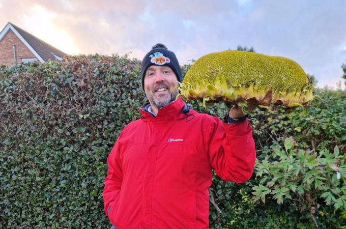 Velšští farmáři sklidili rekordně velkou slunečnici