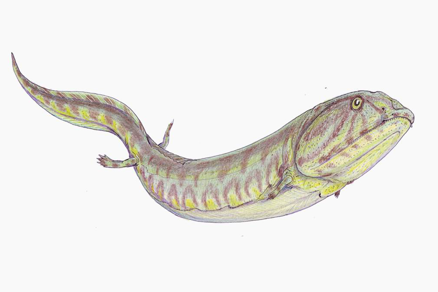 Podoba krvežíznivého „megapulce“ Crassigyrinus scoticus podle dřívějších představ. (zdroj: Wikimedia Commons, DiBgd, CC BY-SA 3.0)