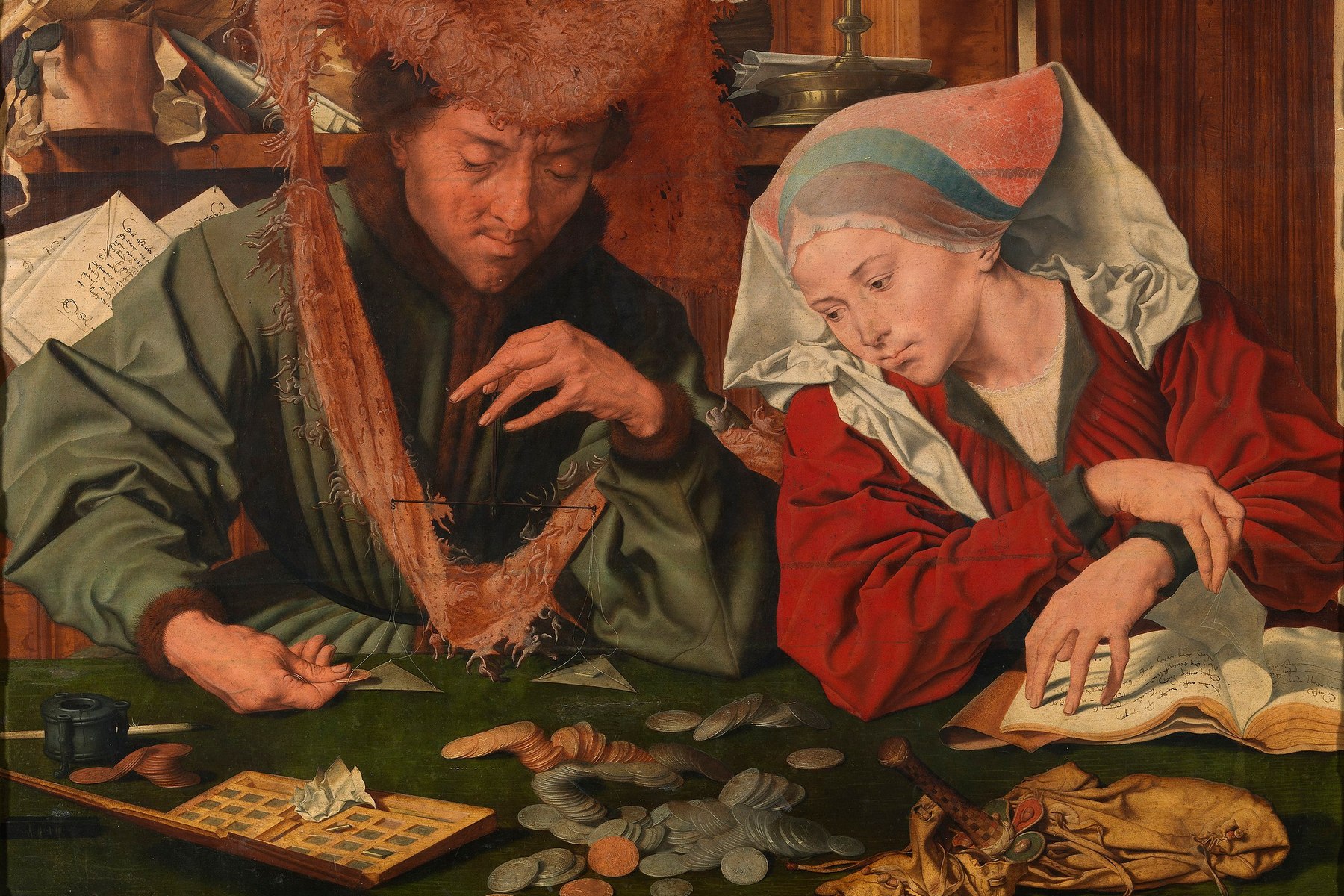 Lichvář a jeho žena, obraz holandského malíře Marina van Reymerswaeleho. Půčky na úrok byly neetické, ale zákon na ně nedosáhl. (zdroj: Wikimedia Commons, CC0)
