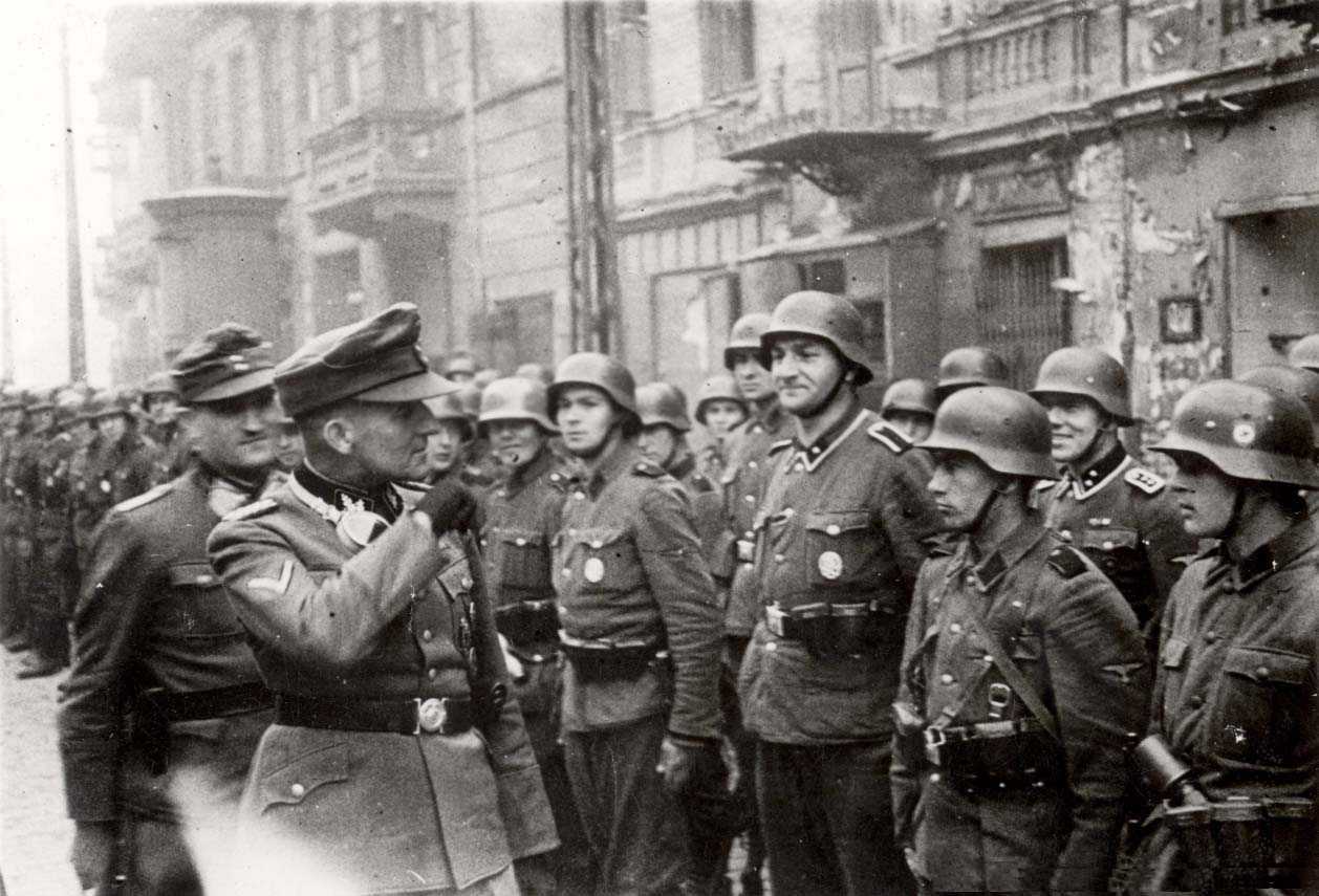 Jürgen Stroop během inspekce ve varšavském ghettu v dubnu 1943.