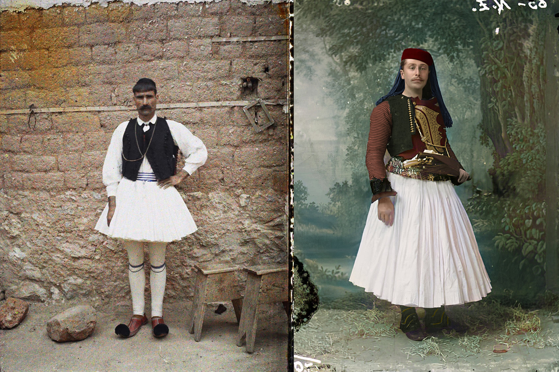 Vlevo tradiční kroj na snímku z roku 1912 – fotograf zmiňoval, že muž měřil na výšku 1,8 metru. Vpravo Murad Toptani, albánský básník, sochař a vlastenec. (foto: Alamy/Musée Albert-Kahn)