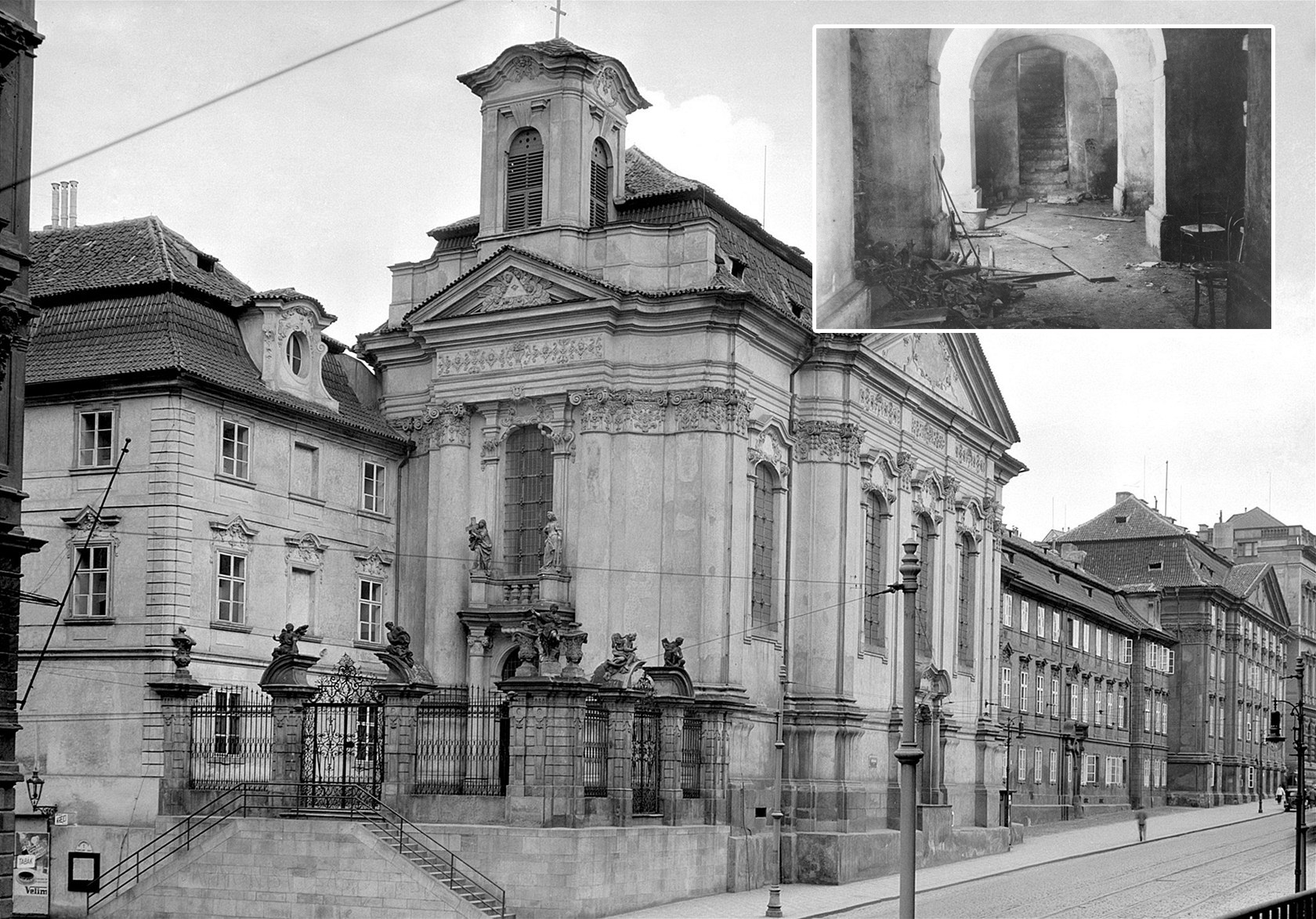 Budova pravoslavného chrámu Cyrila a Metoděje v Resslově ulici v Praze, kde se skrývali parašutisté po atentátu na Reinharda Heydricha.