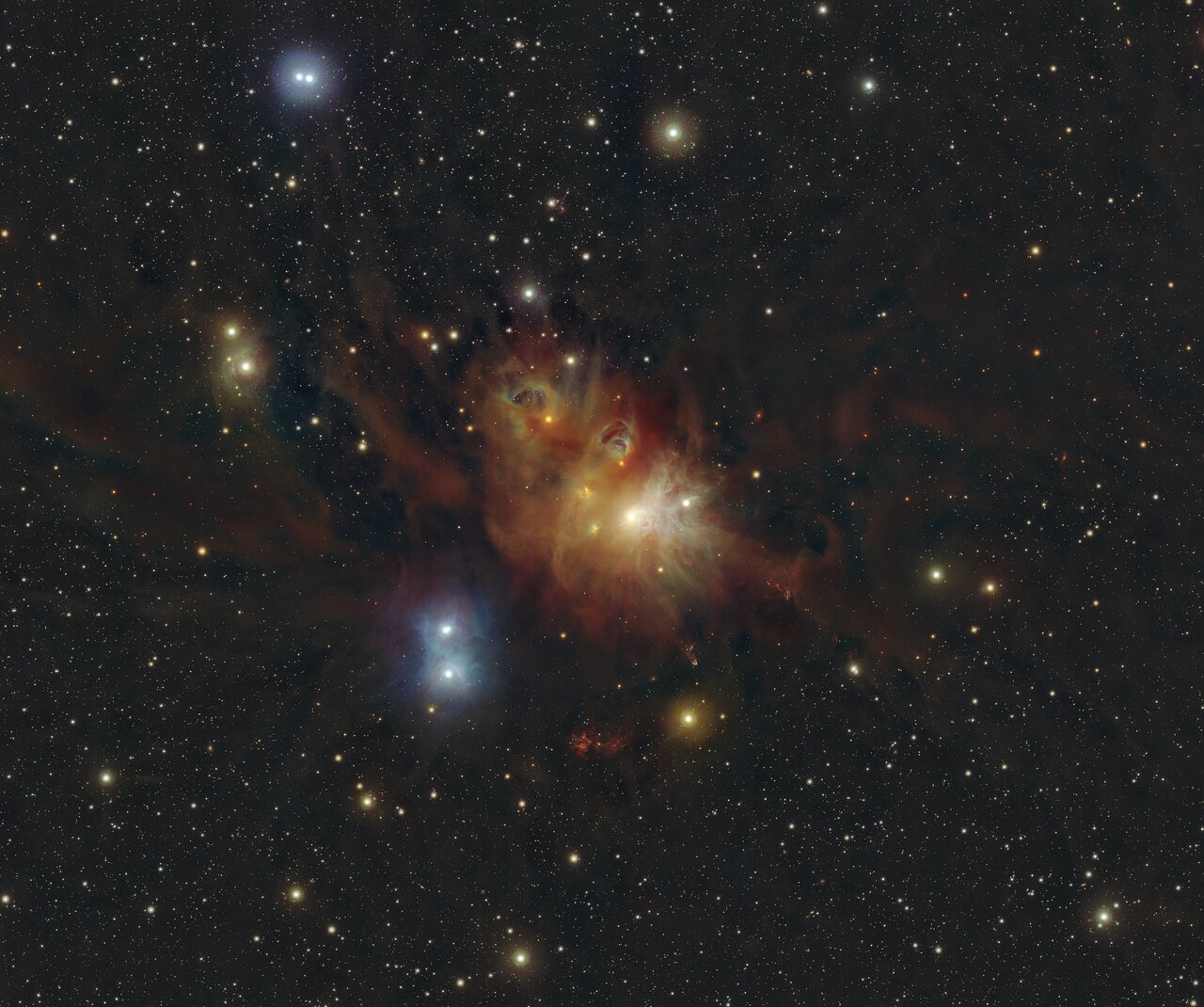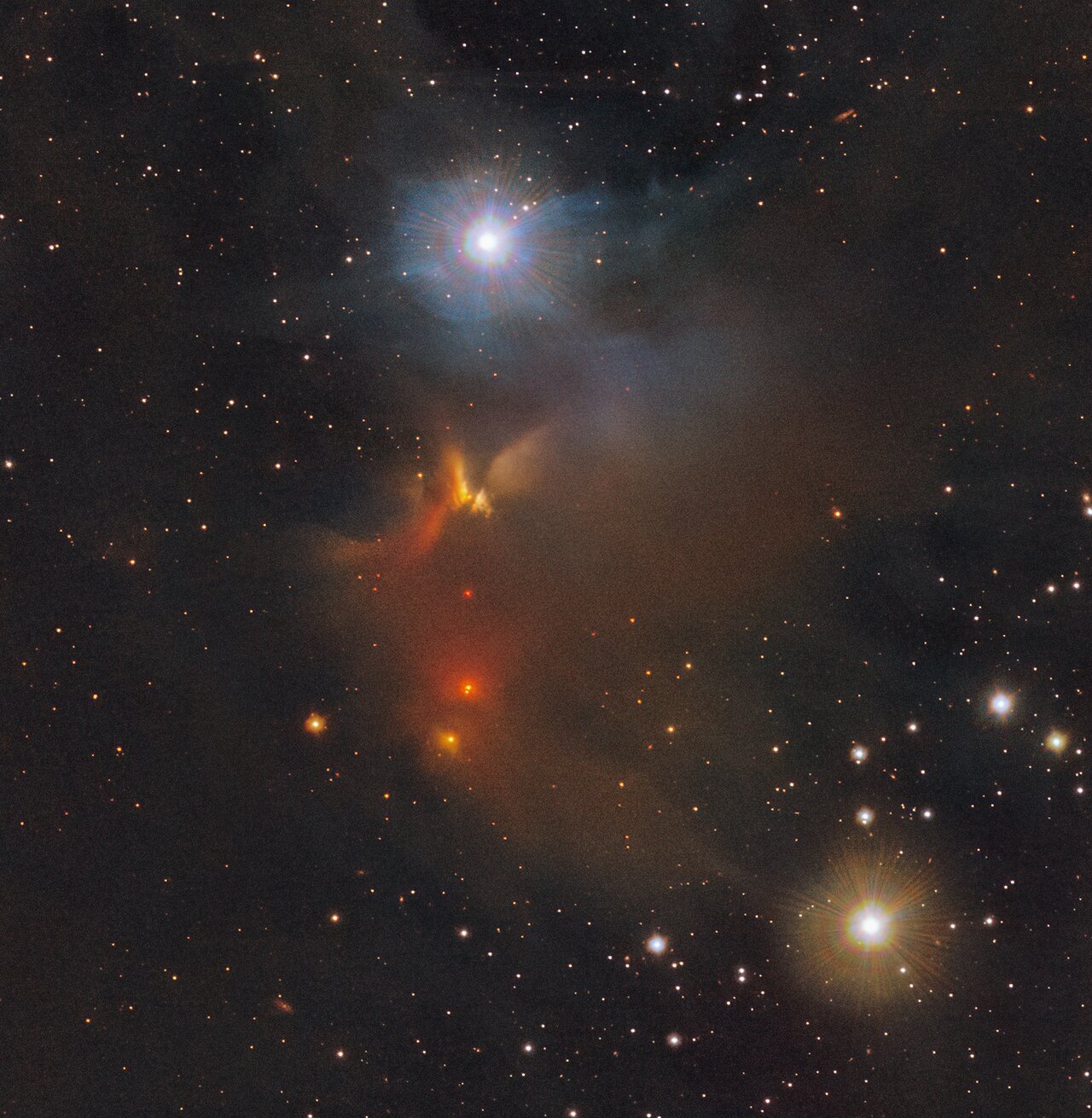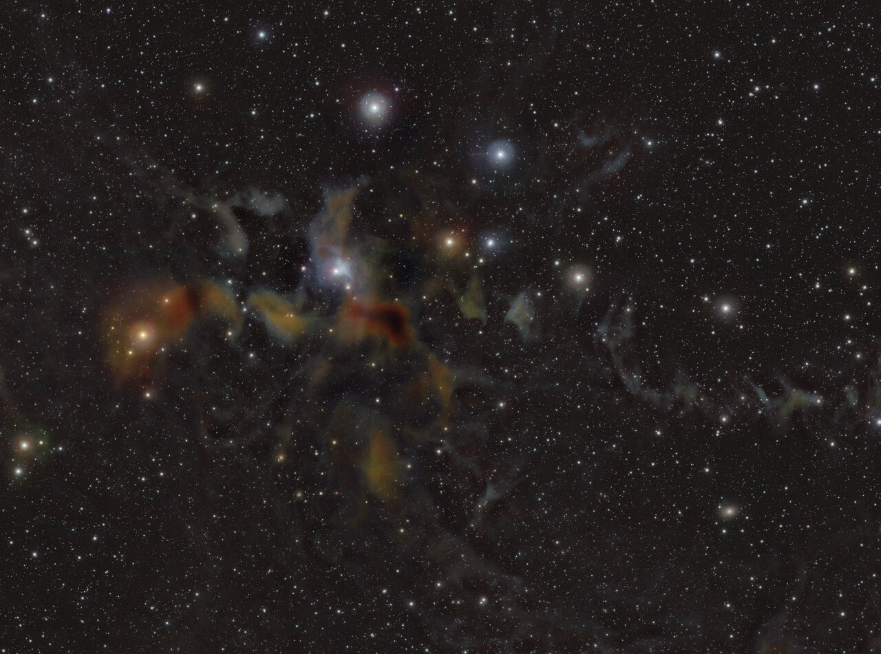 Infračervený snímek oblasti L1688 v souhvězdí Hadonoše. (foto: ESO, Stefan Meingast, CC BY-SA 4.0)