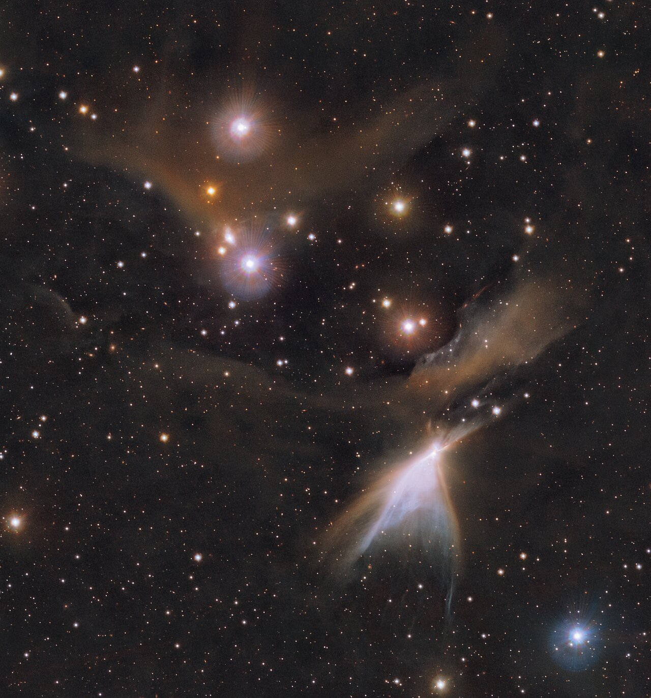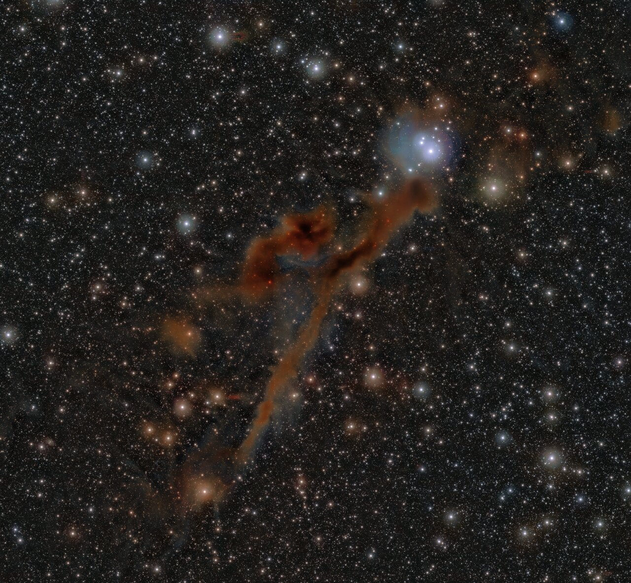 Snímek zachycuje oblasti kolem hvězdokupy Coronet v souhvězdí Jižní koruna. V oblacích plynu a prachu se zde rodí nové hvězdy. (foto: ESO, Stefan Meingast, CC BY-SA 4.0)
