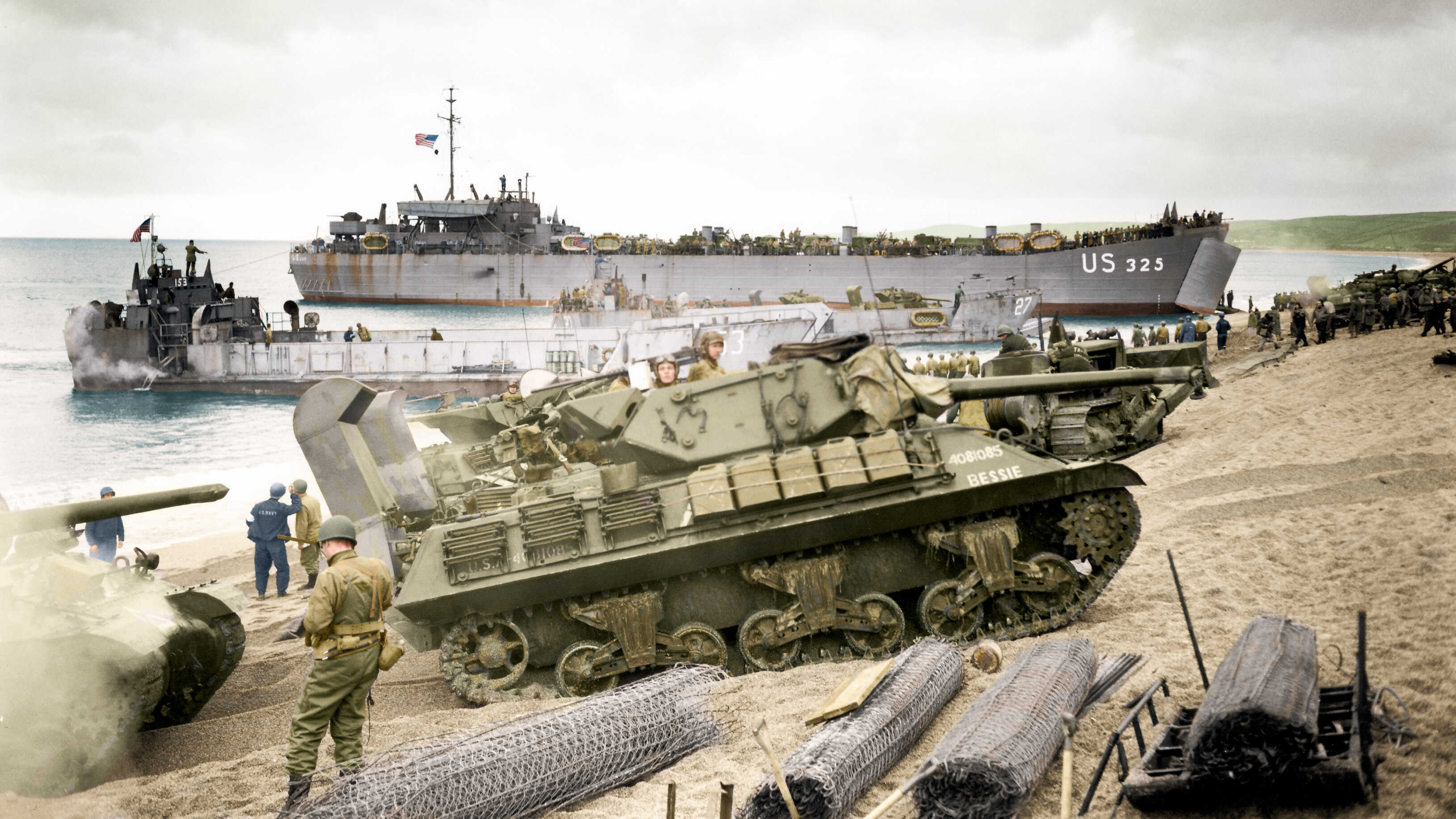 Americký stíhač tanků M10 a další invazní síly během nácviku vylodění ještě v Anglii. (foto: Profimedia)