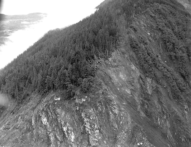 Následky obří vlny v zátoce Lituya. (foto: Wikimedia Commons, USGS, D.J. Miller, CC0)